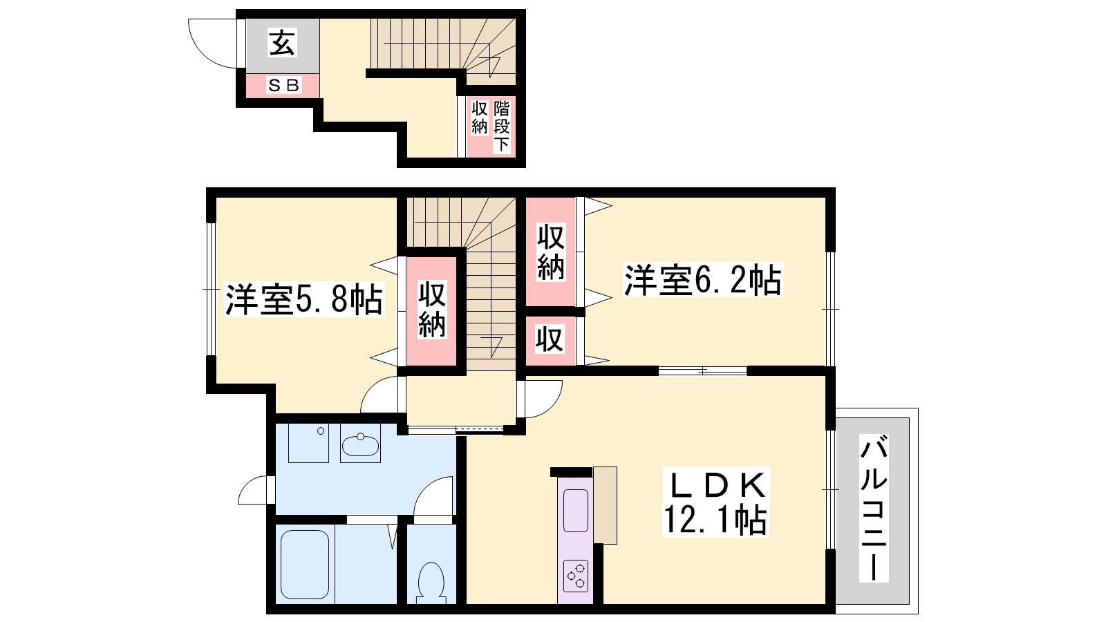 - LDK12.1帖、洋室6.2帖、洋室5.8帖