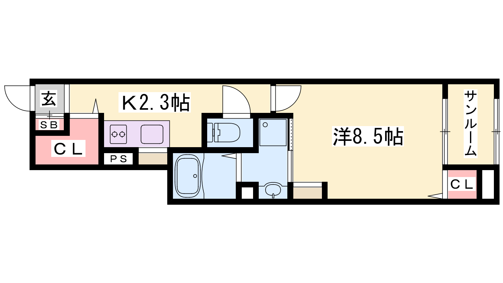 - K2.3帖、洋室8.5帖