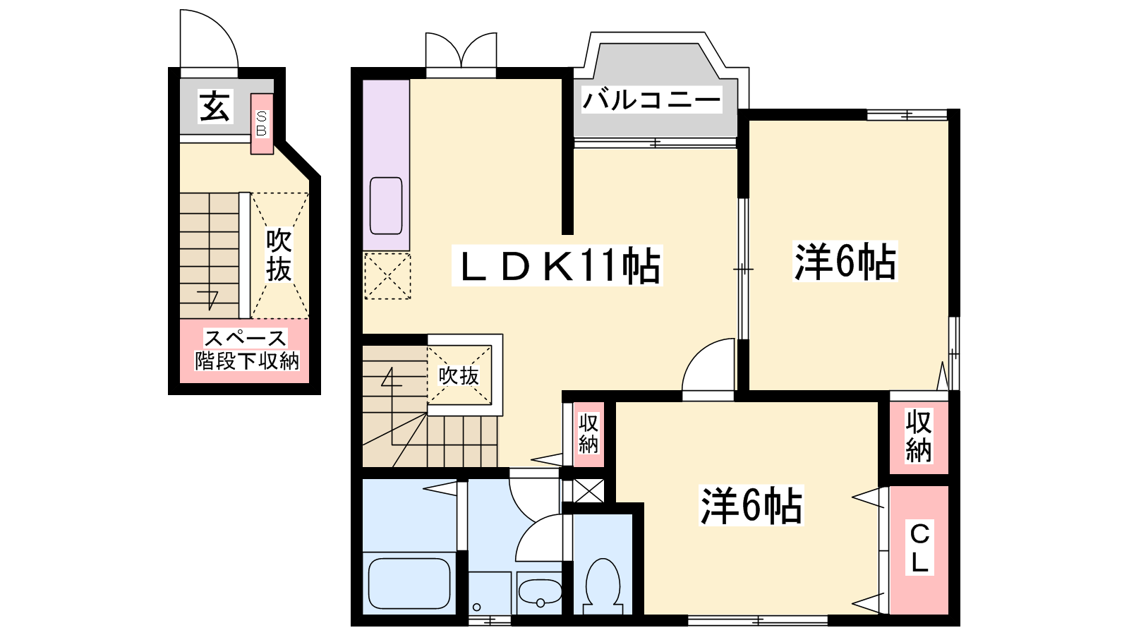 - LDK11帖、洋室6帖、洋室6帖