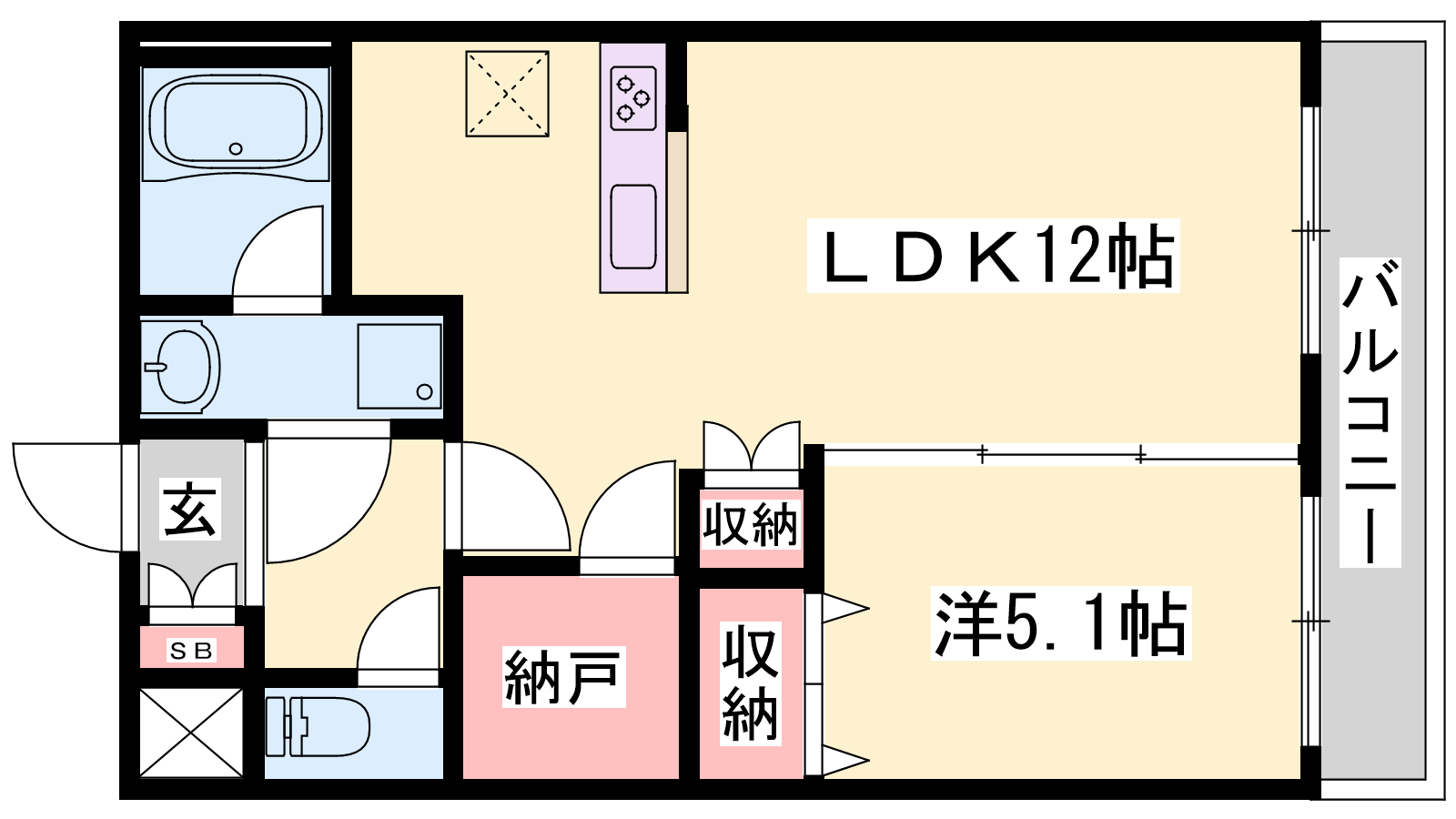 - LDK12帖、洋室5.1帖
