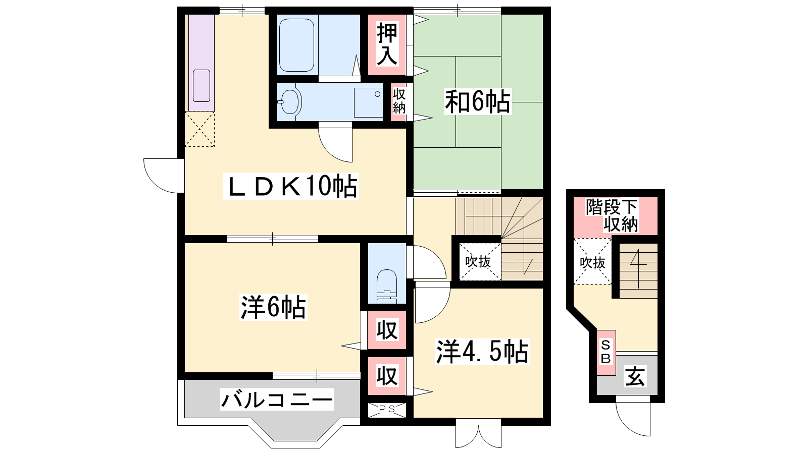 - LDK10帖、洋室6帖、洋室4.5帖、和室6帖