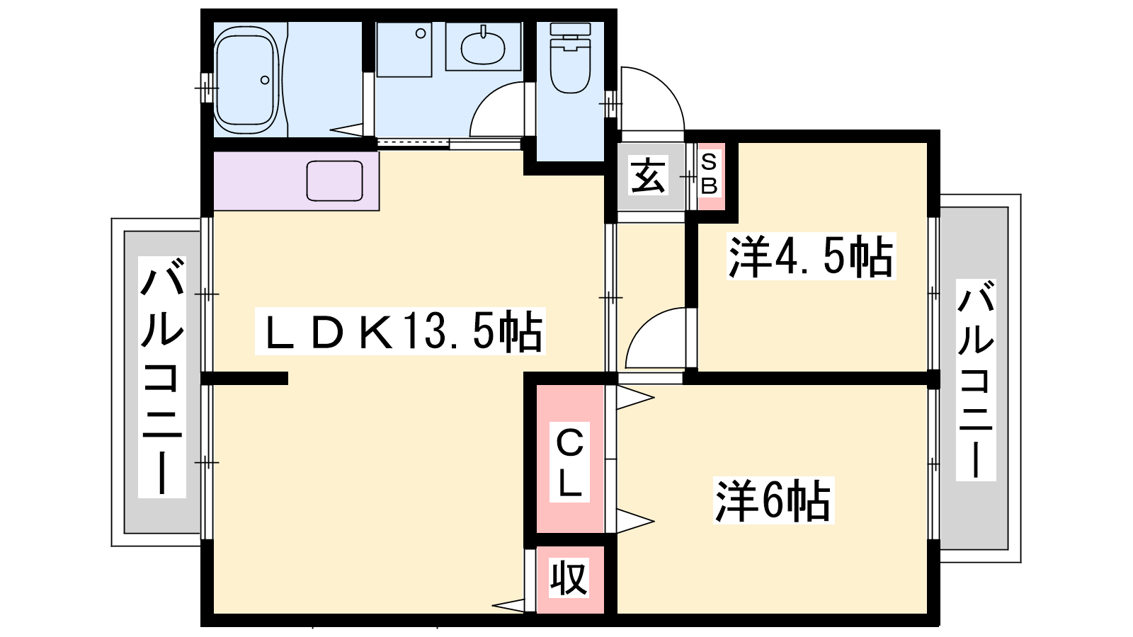 - LDK13.5帖、洋室6帖、洋室4.5帖