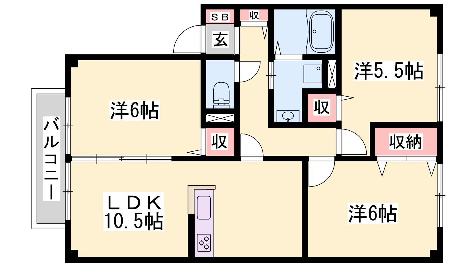 - LDK10.5帖、洋室6帖、洋室6帖、洋室5.5帖