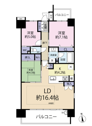 - LDK16.1帖、洋室7.1帖、洋室5帖、和室4.5帖