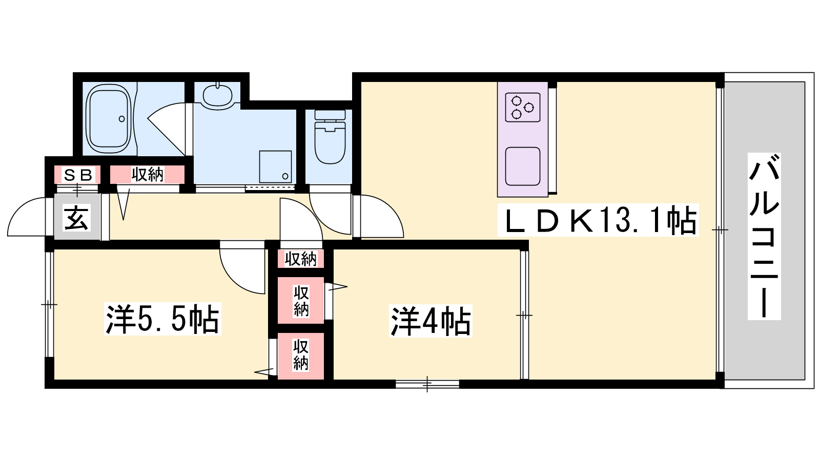 - LDK13.1帖、洋室5.5帖、洋室4帖