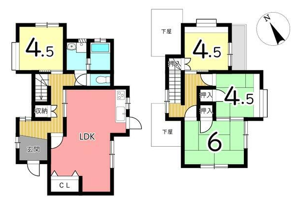 - 洋室4.5帖、洋室4.5帖、和室6帖、和室4.5帖