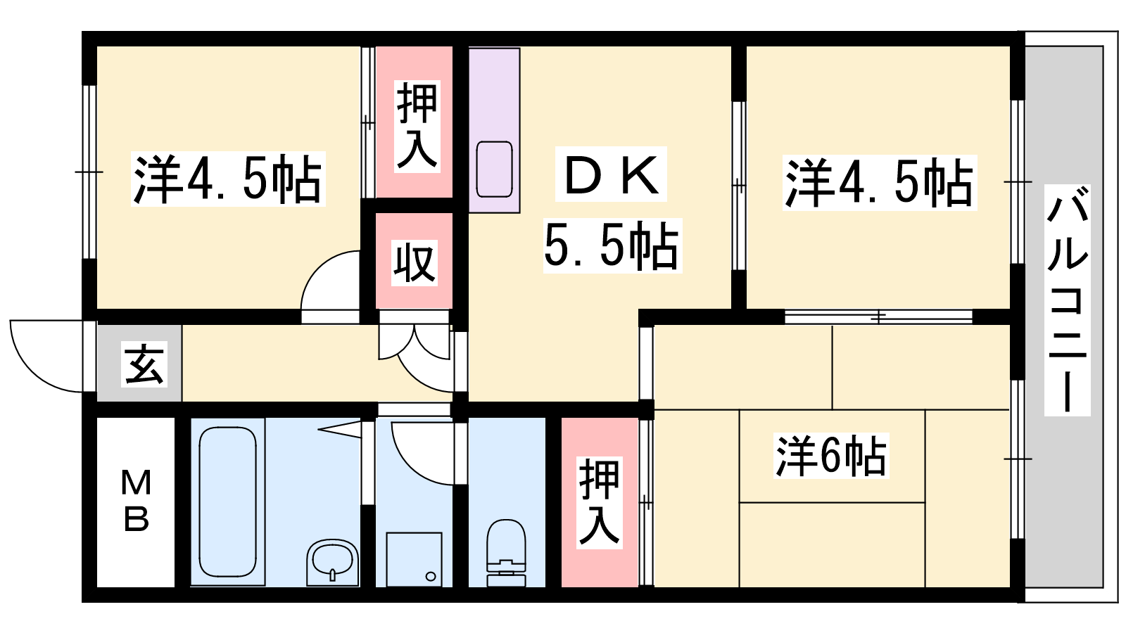 - DK5.5帖、洋室4.5帖、洋室4.5帖、洋室6帖