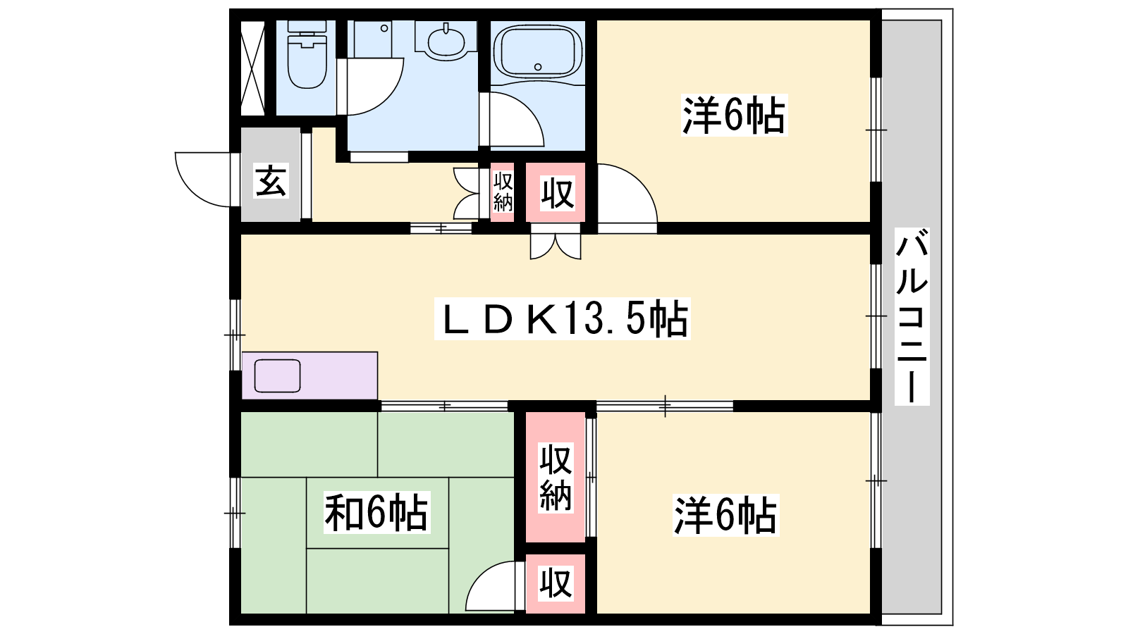 - LDK13.5帖、洋室6帖、和室6帖、和室6帖
