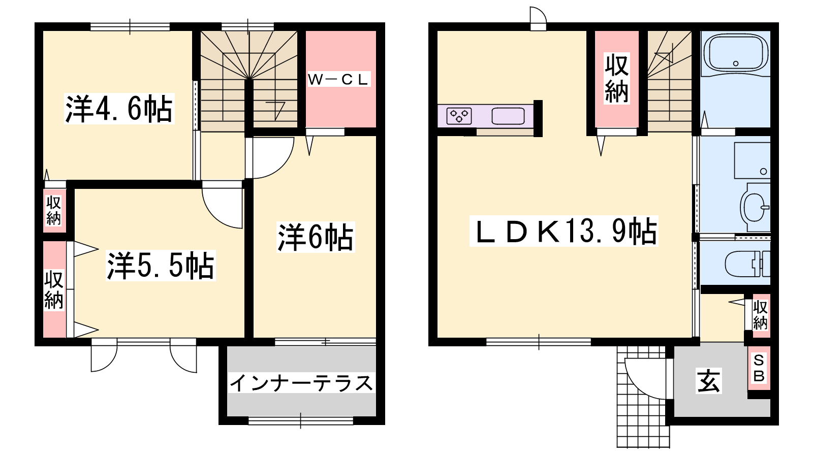 - LDK13.9帖、洋室6帖、洋室5.5帖、洋室4.6帖