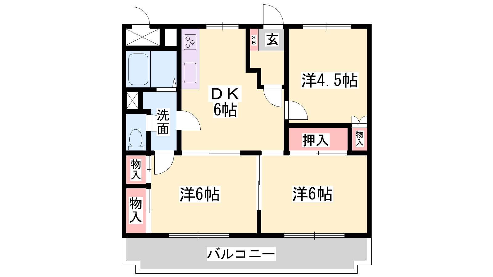 - DK6帖、洋室6帖、洋室4.5帖、洋室6帖