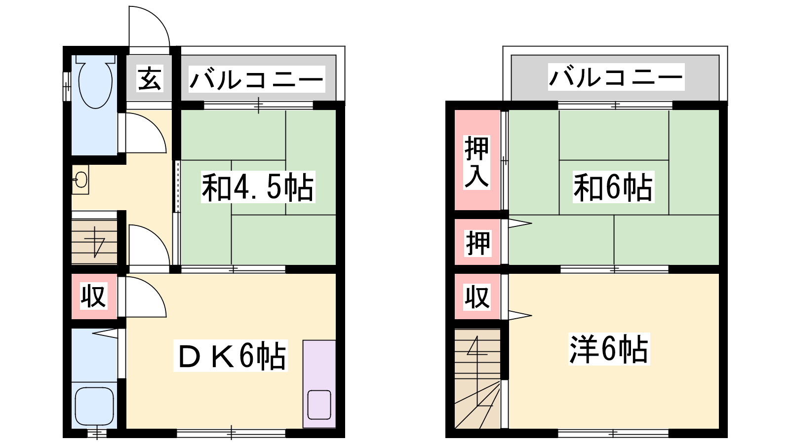 - DK6帖、洋室6帖、和室6帖、和室4.5帖