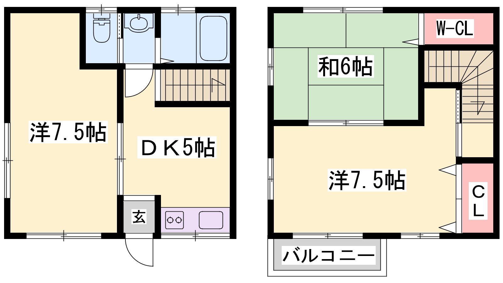 - DK5帖、洋室7.5帖、洋室7.5帖、和室6帖