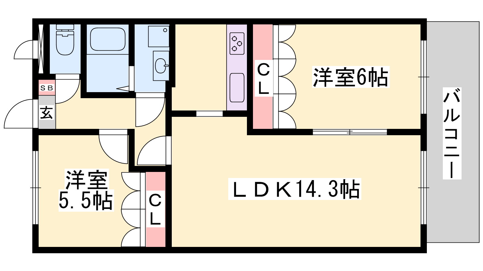 - LDK14.2帖、洋室5.9帖、洋室5.4帖