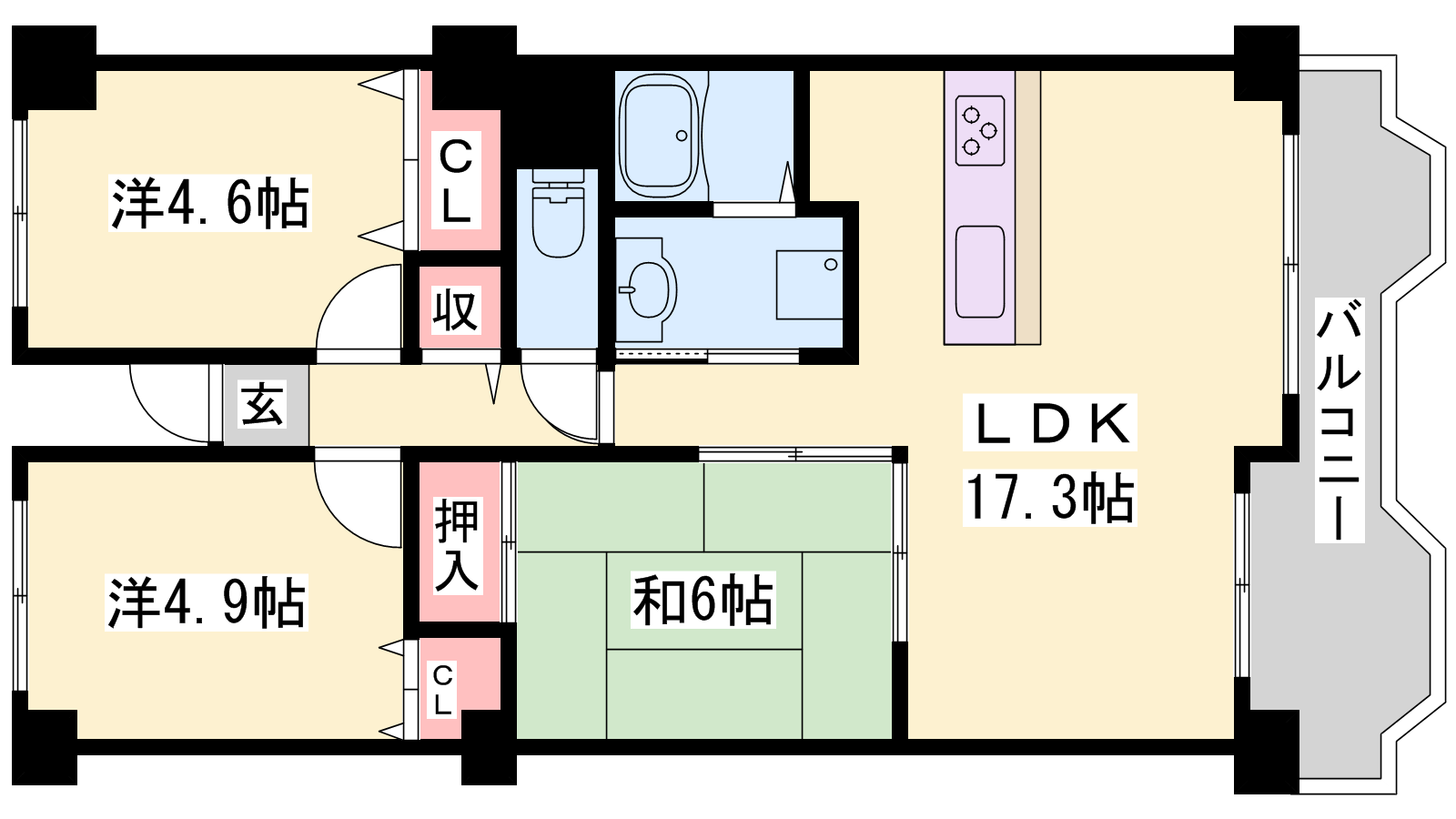 - LDK17.3帖、和室6帖、洋室4.9帖、洋室4.6帖