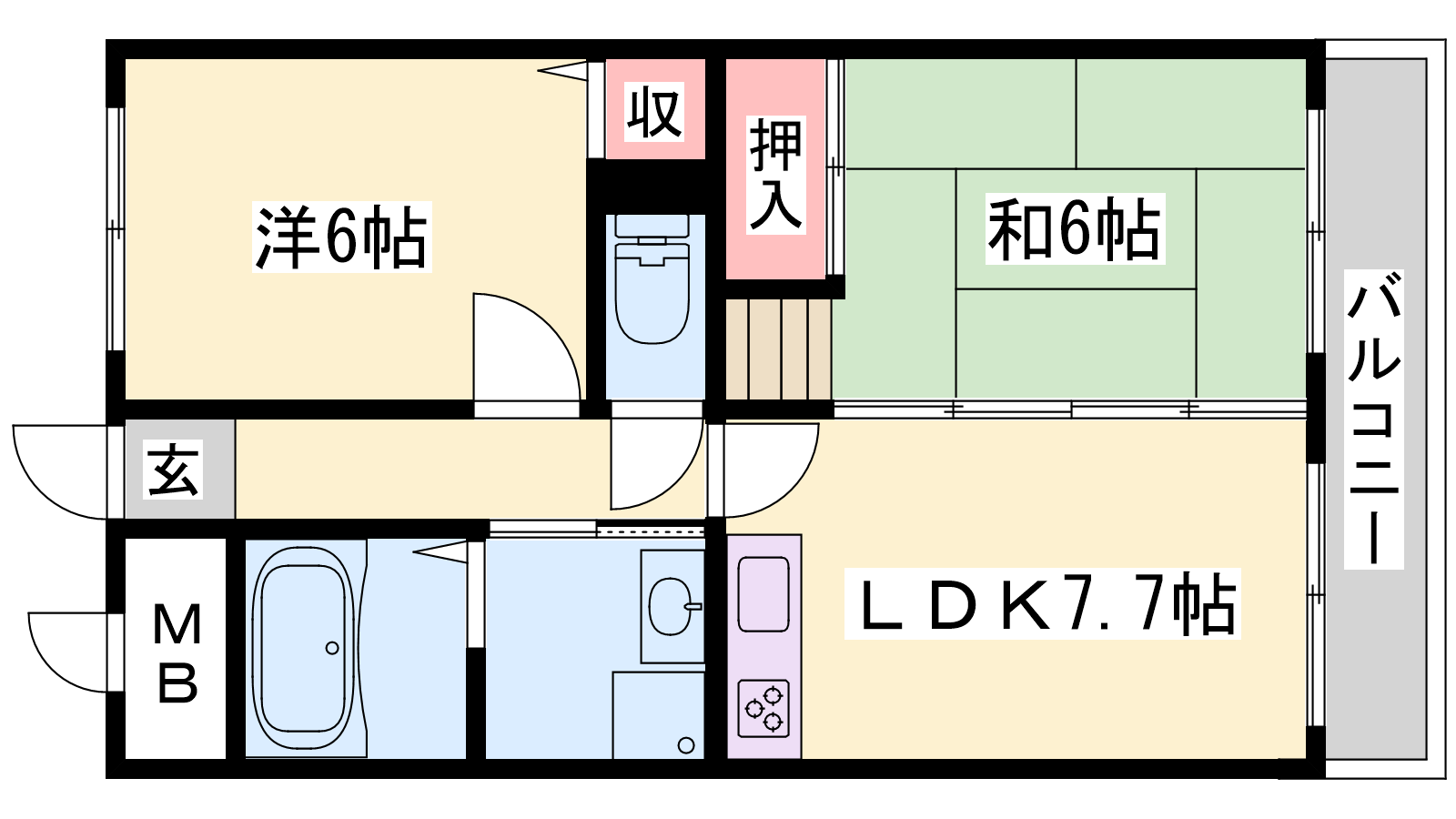 - DK7.7帖、和室6帖、洋室6帖