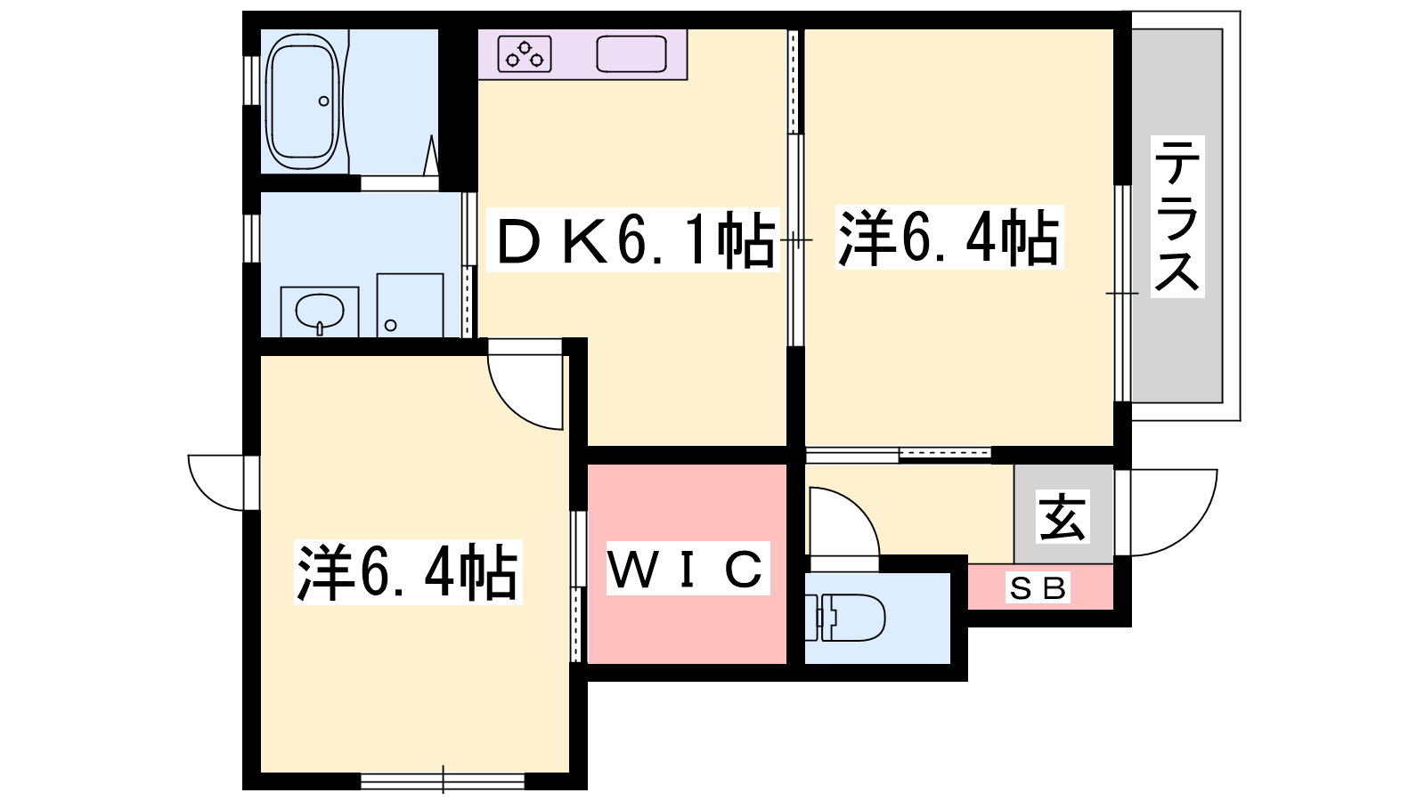 - DK6.1帖、洋室6.4帖、洋室6.4帖