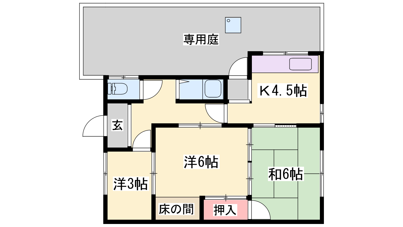 - K4.5帖、洋室6帖、洋室3帖、和室6帖