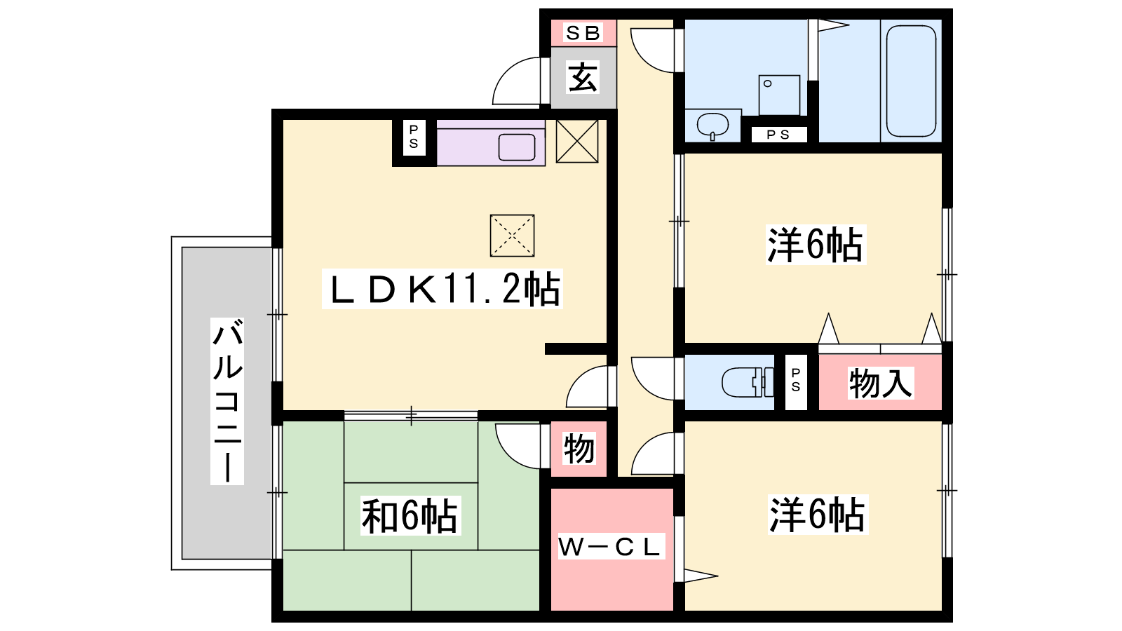 - LDK11.2帖、和室6帖、洋室6帖、洋室6帖