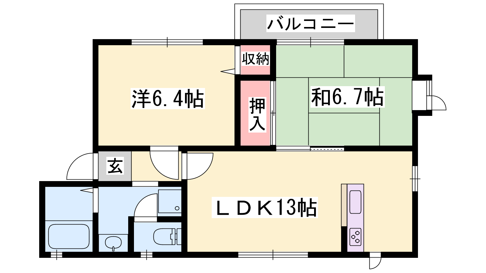 - LDK13帖、洋室6.4帖、和室6.7帖