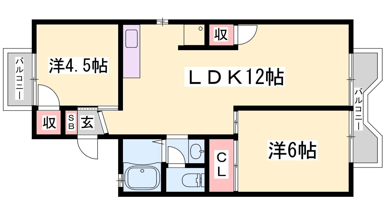 - LDK12帖、洋室6帖、洋室4.5帖