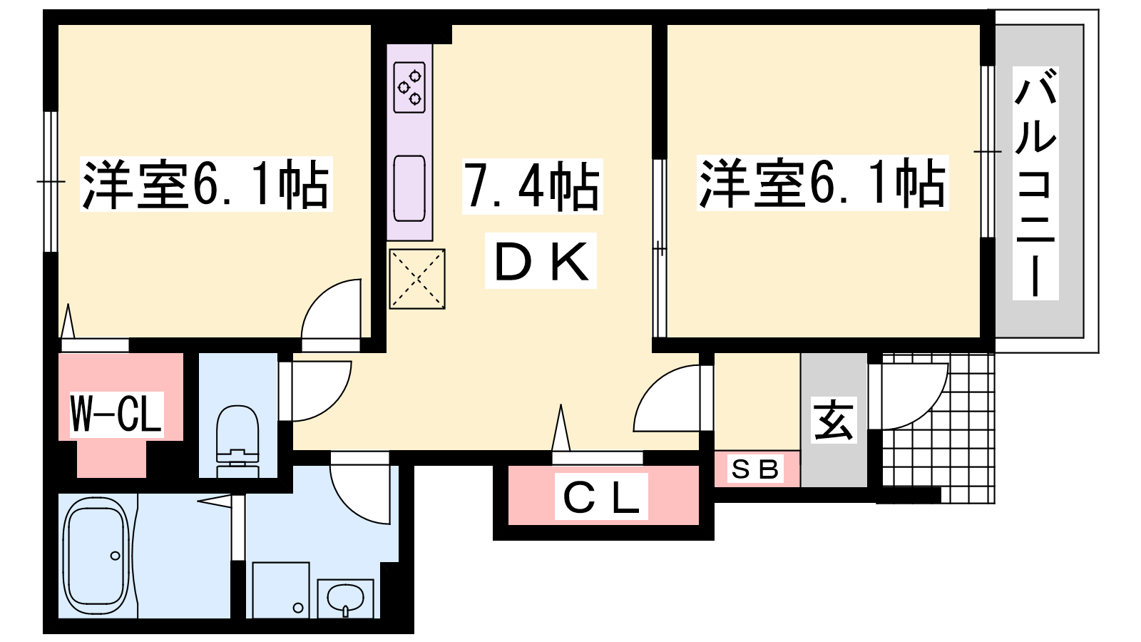 - DK7.4帖、洋室6.1帖、洋室6.1帖
