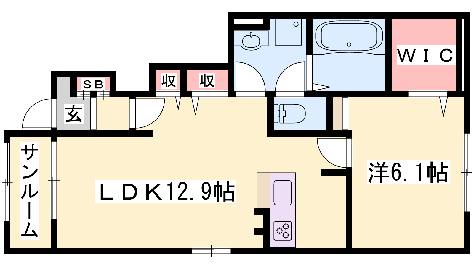 - LDK12.9帖、洋室6.1帖