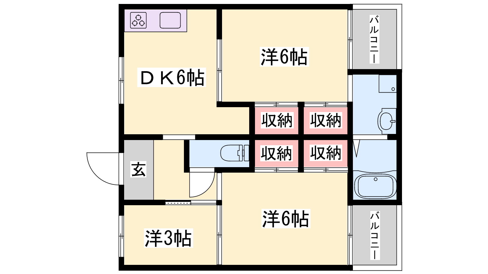 - DK6帖、洋室6帖、洋室6帖、洋室3帖