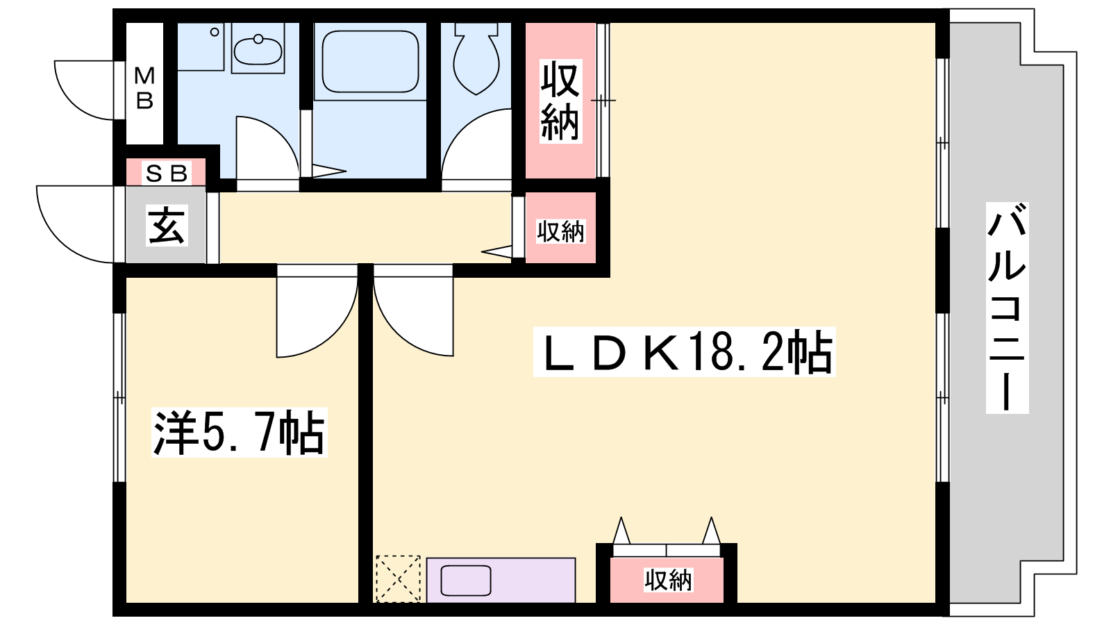 - LDK18.2帖、洋室5.7帖