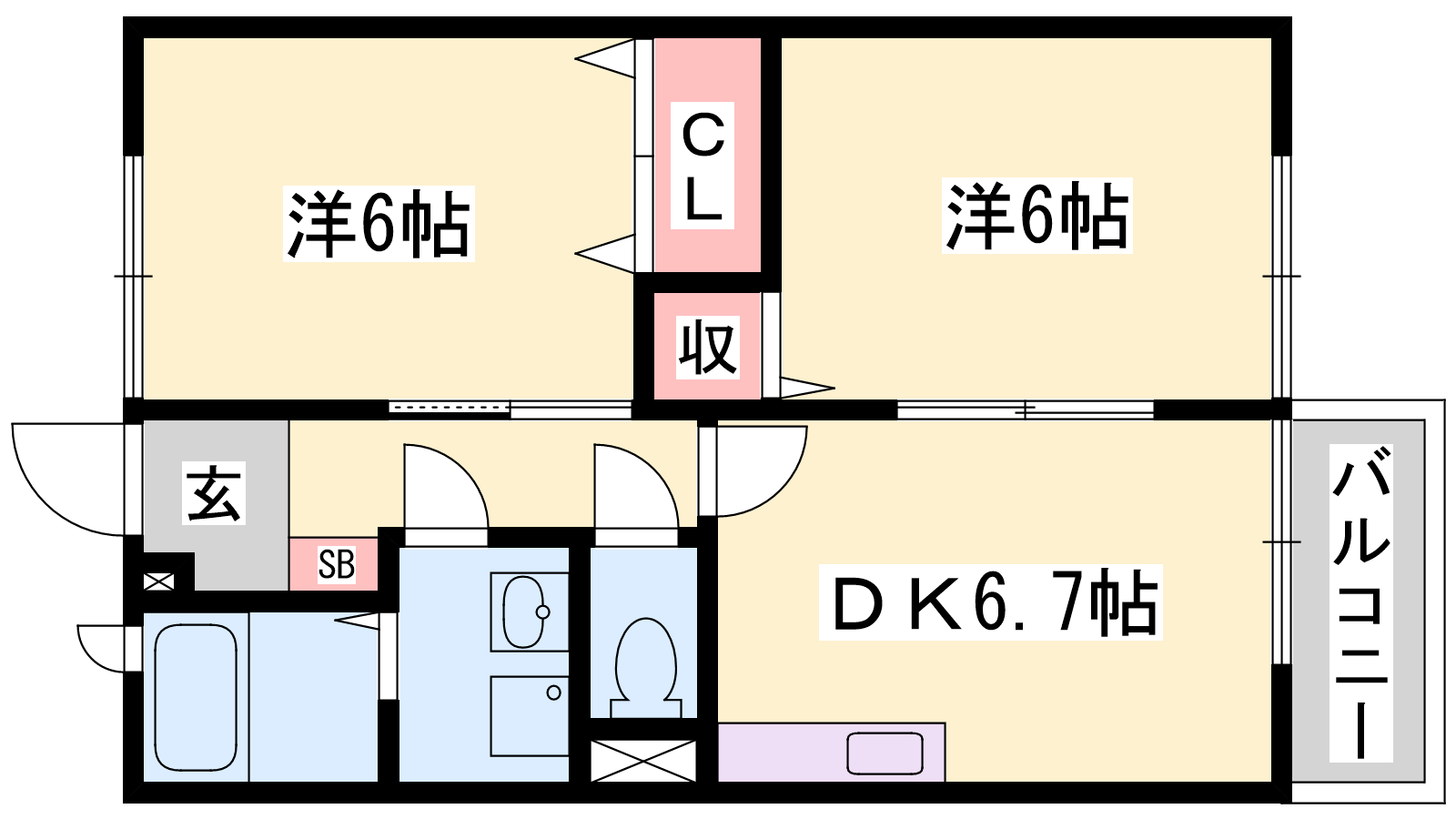 - DK6.7帖、洋室6帖、洋室6帖