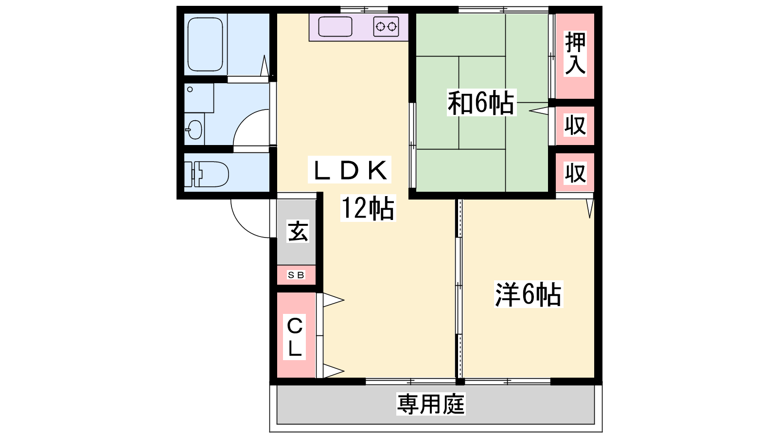 - LDK12帖、洋室6帖、和室6帖
