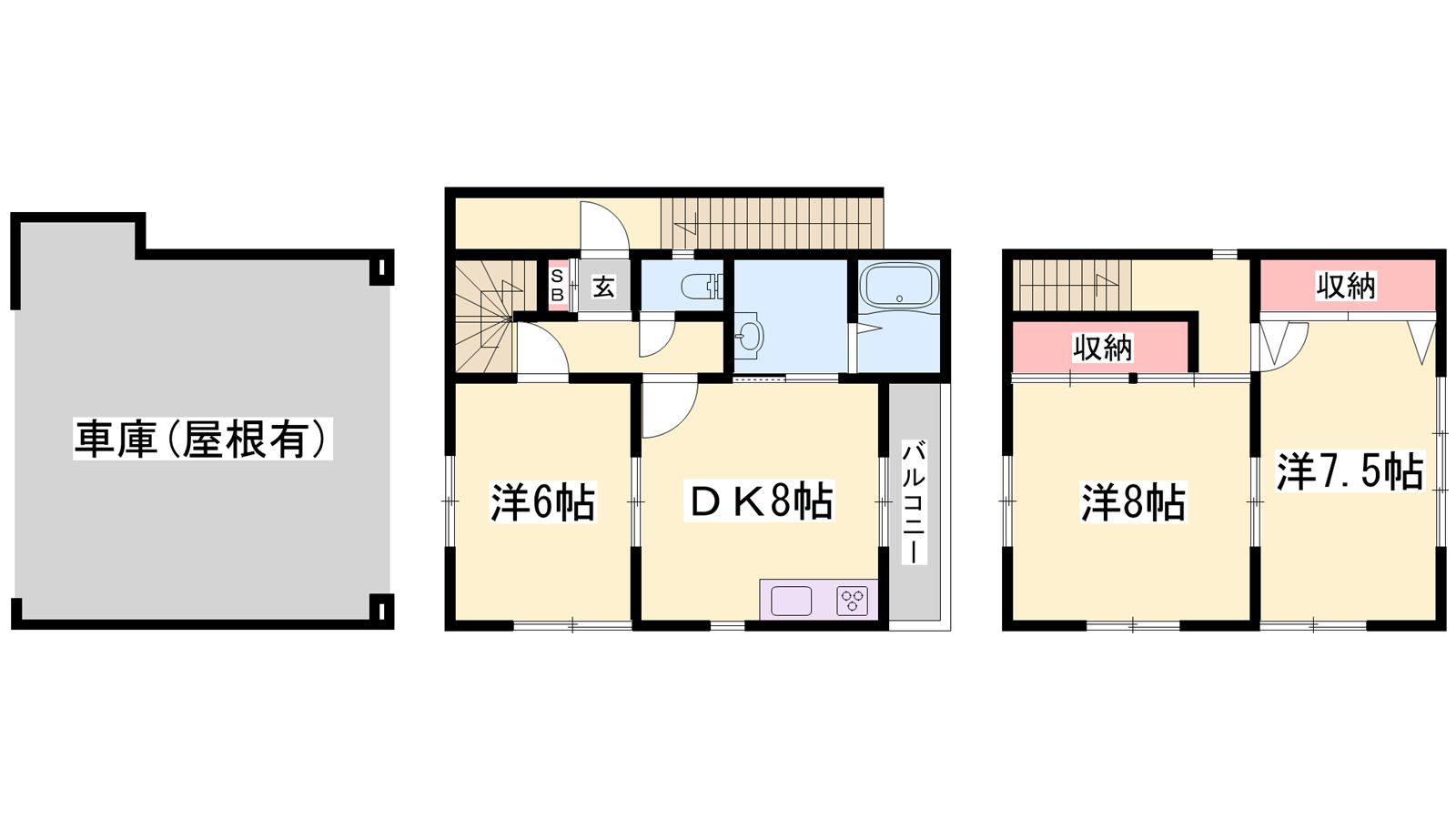 - DK8帖、洋室8帖、洋室7.5帖、洋室6帖