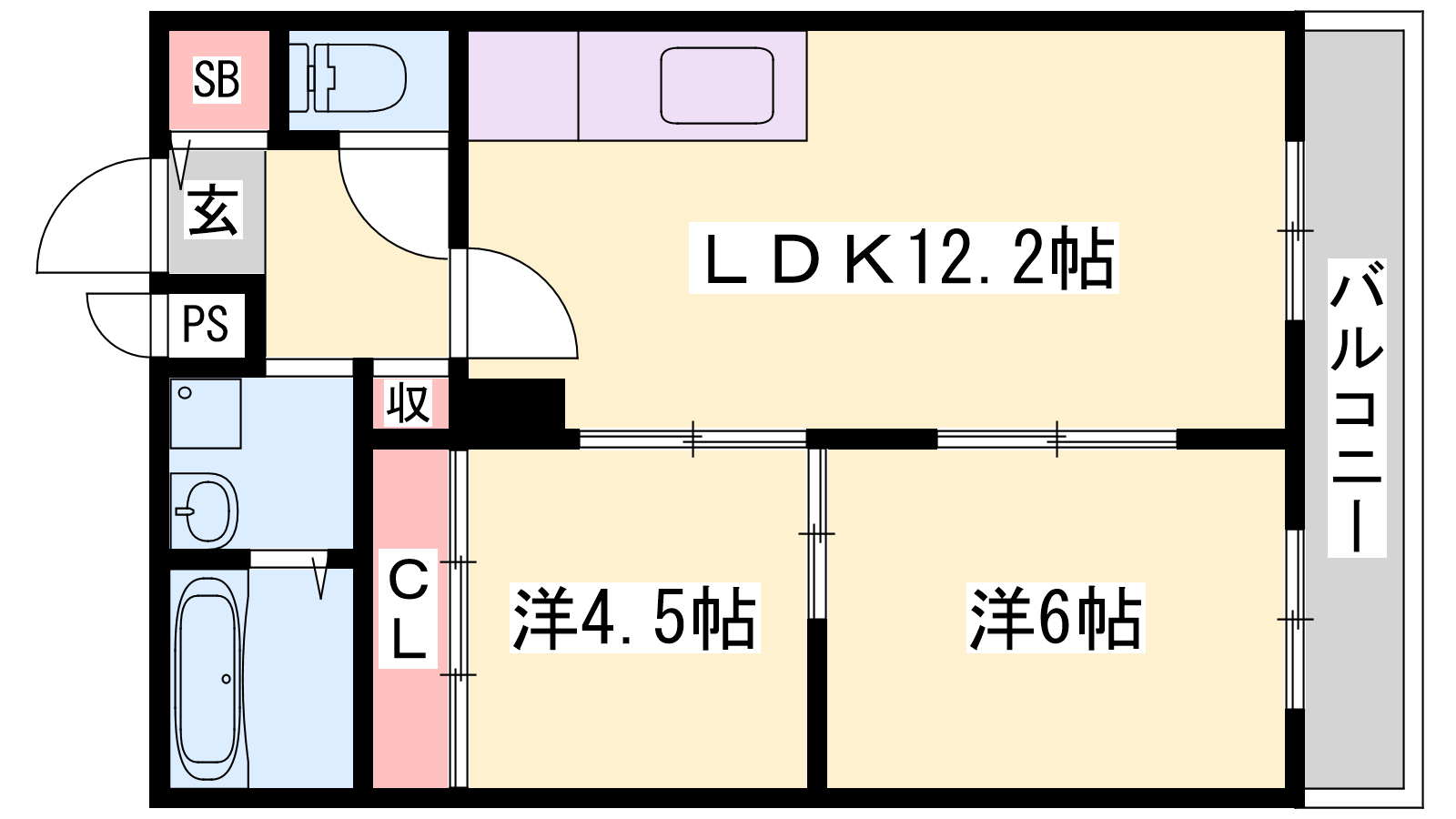- LDK12.2帖、洋室6帖、洋室4.5帖