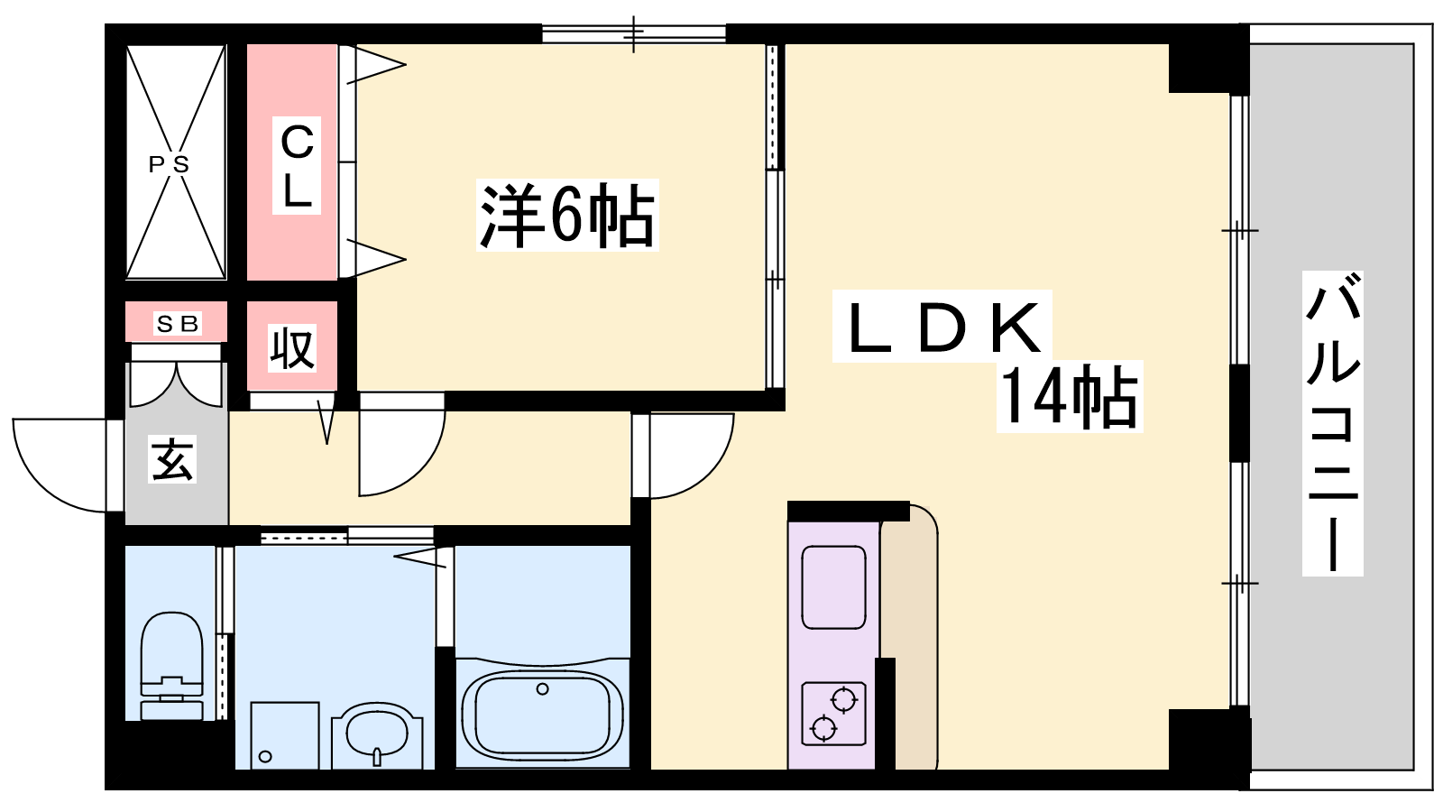 - LDK14帖、洋室6帖