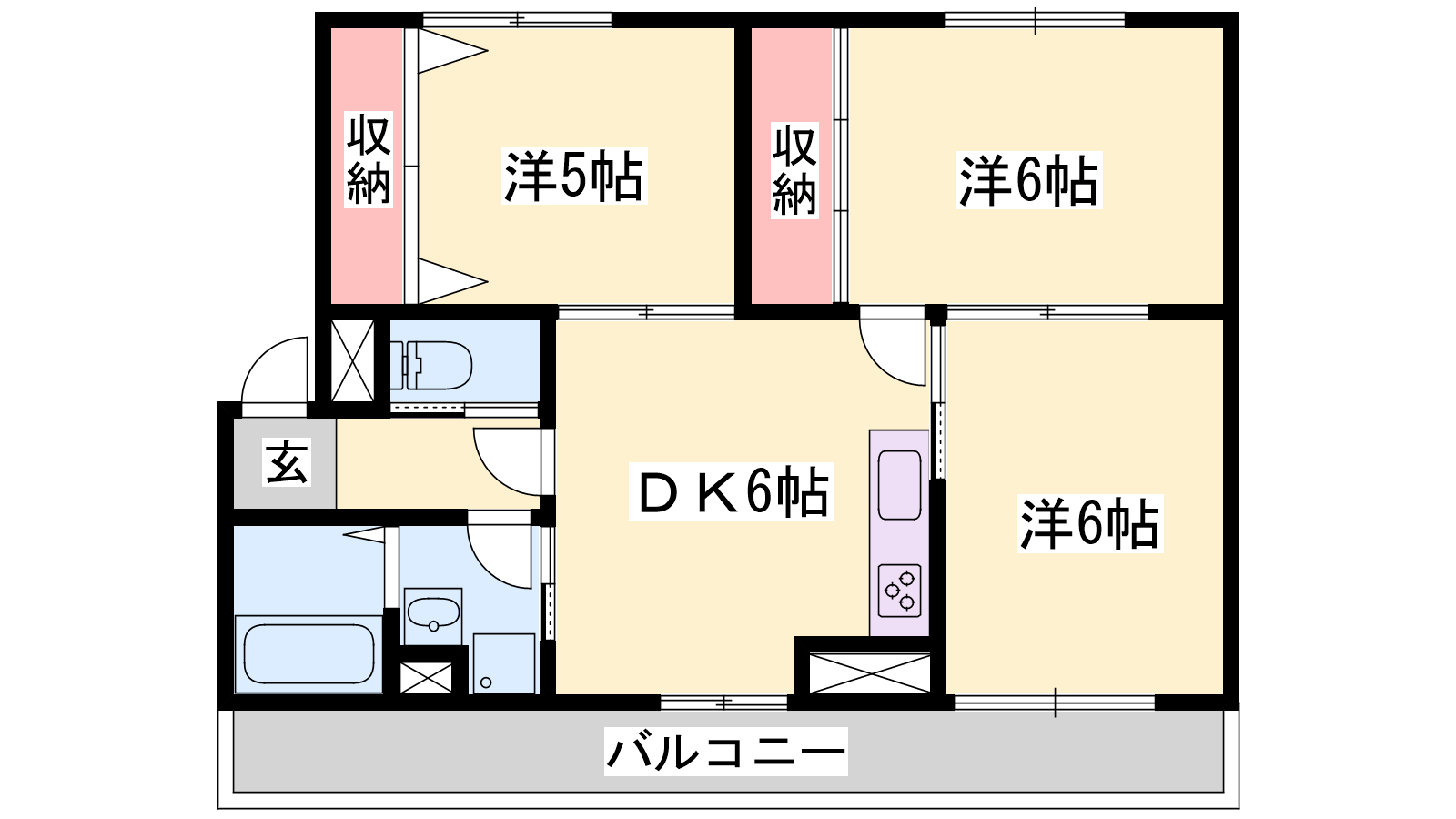 - DK6帖、洋室6帖、洋室6帖、洋室5帖