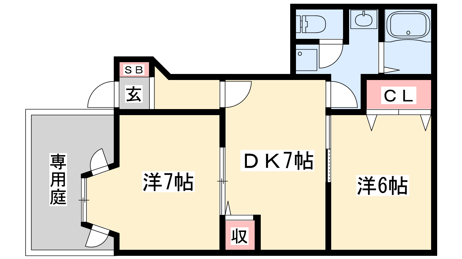 - DK7帖、洋室7帖、洋室6帖