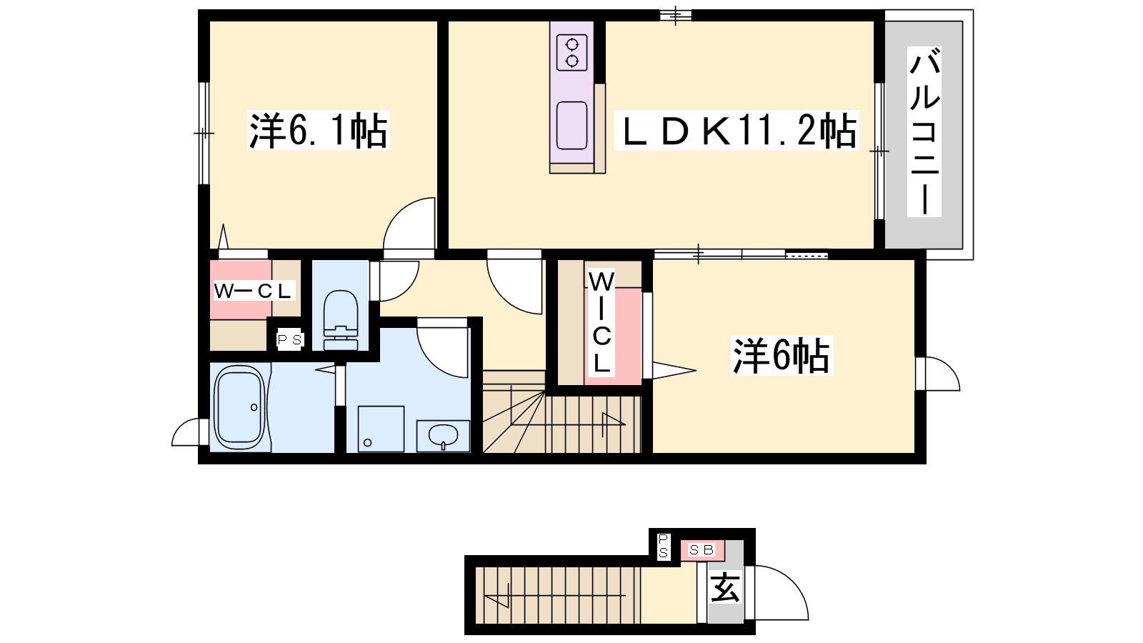 - LDK11.2帖、洋室6.1帖、洋室6帖