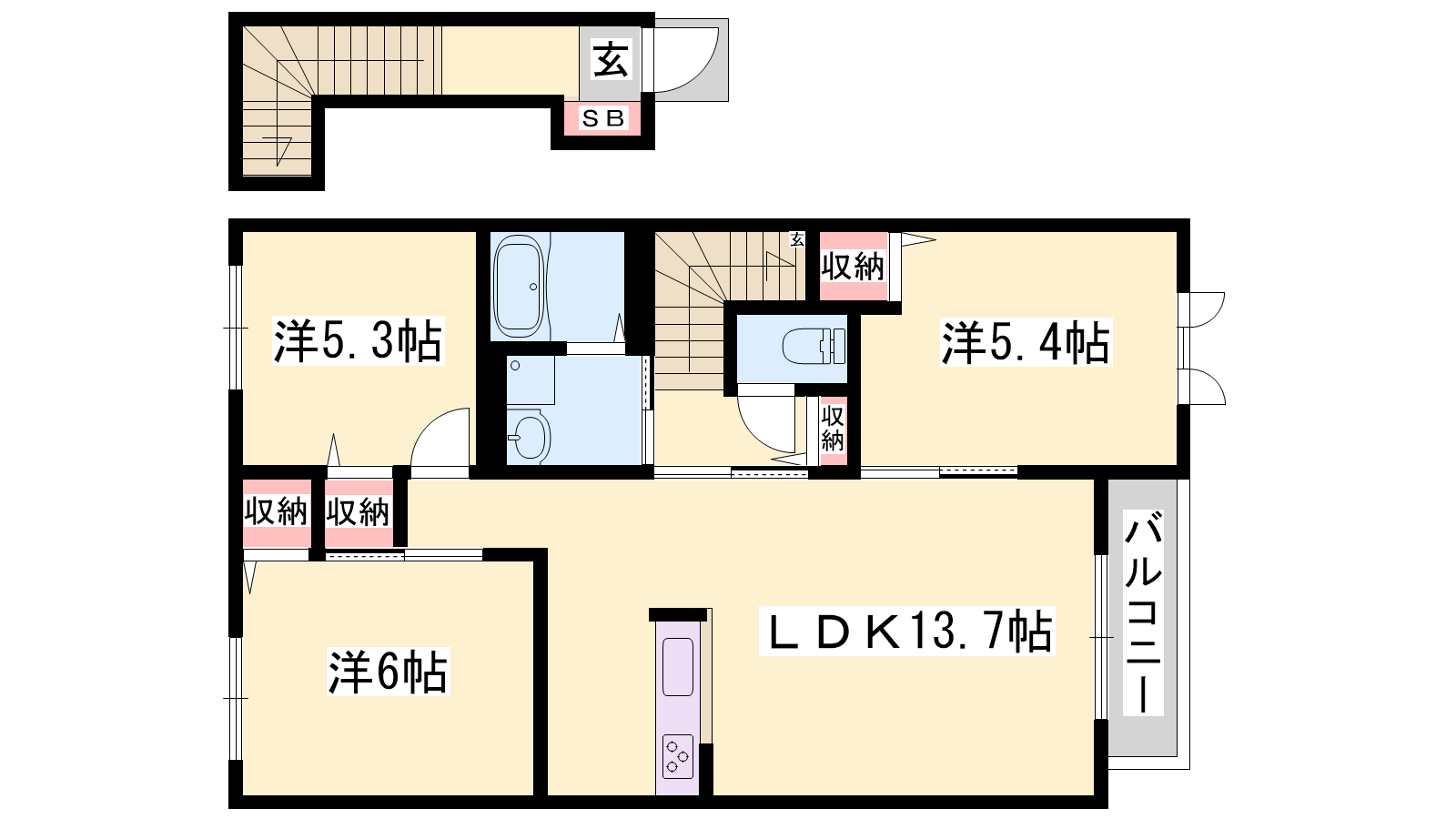 - LDK13.7帖、洋室6帖、洋室5.4帖、洋室5.3帖