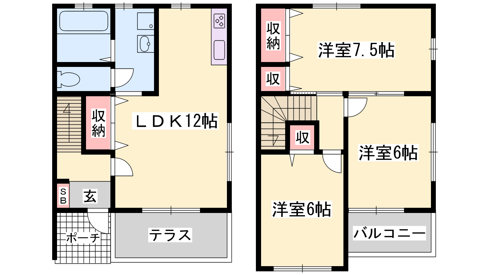 - LDK12帖、洋室7.5帖、洋室6帖、洋室6帖