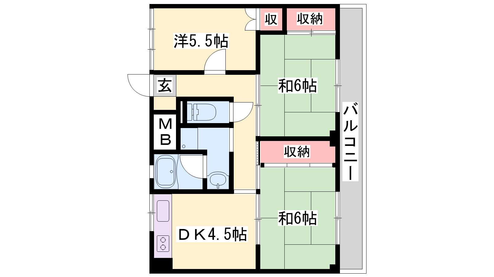 - DK4.5帖、洋室5.5帖、和室6帖、和室6帖
