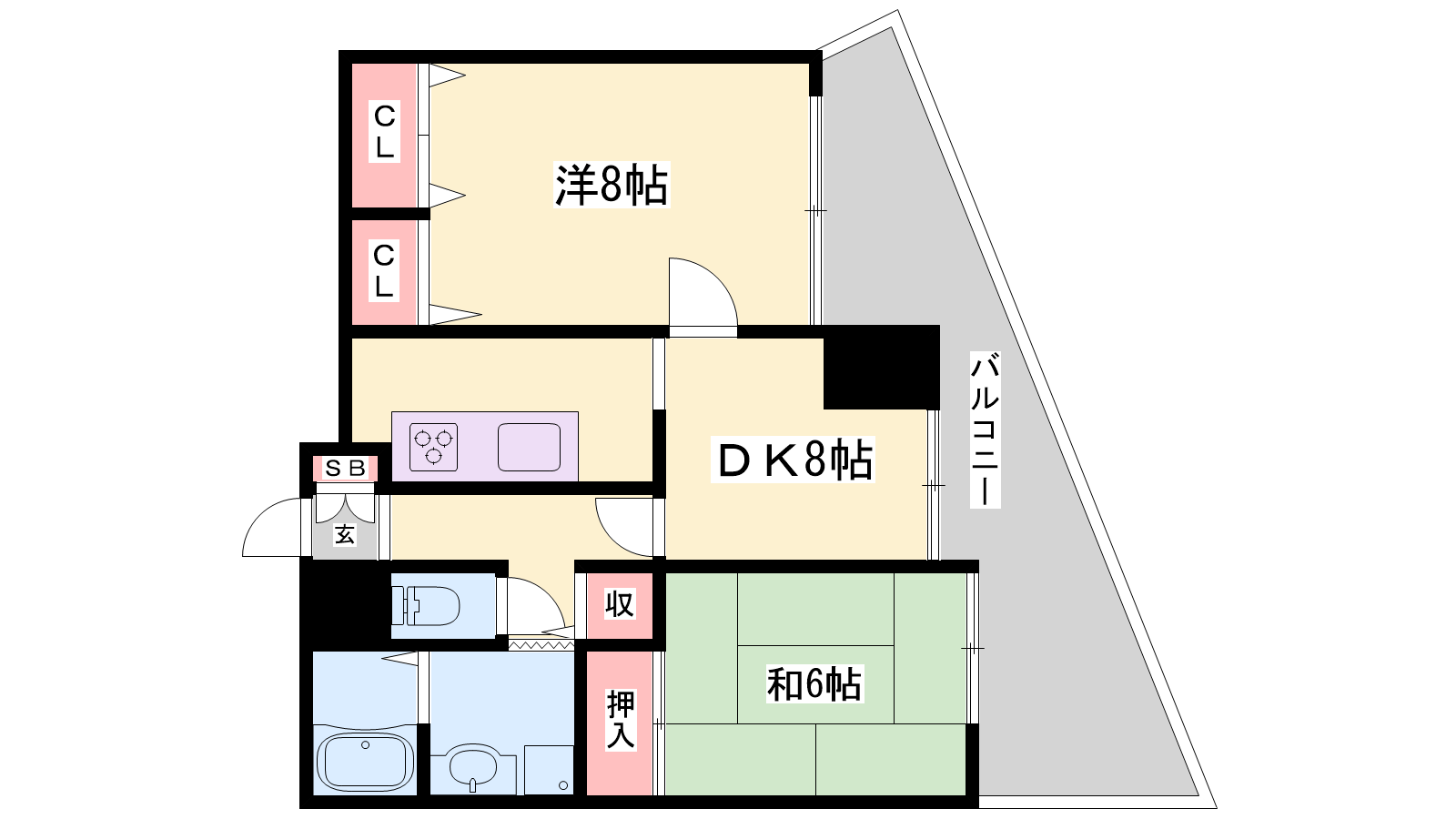 - DK8帖、洋室8帖、洋室6帖
