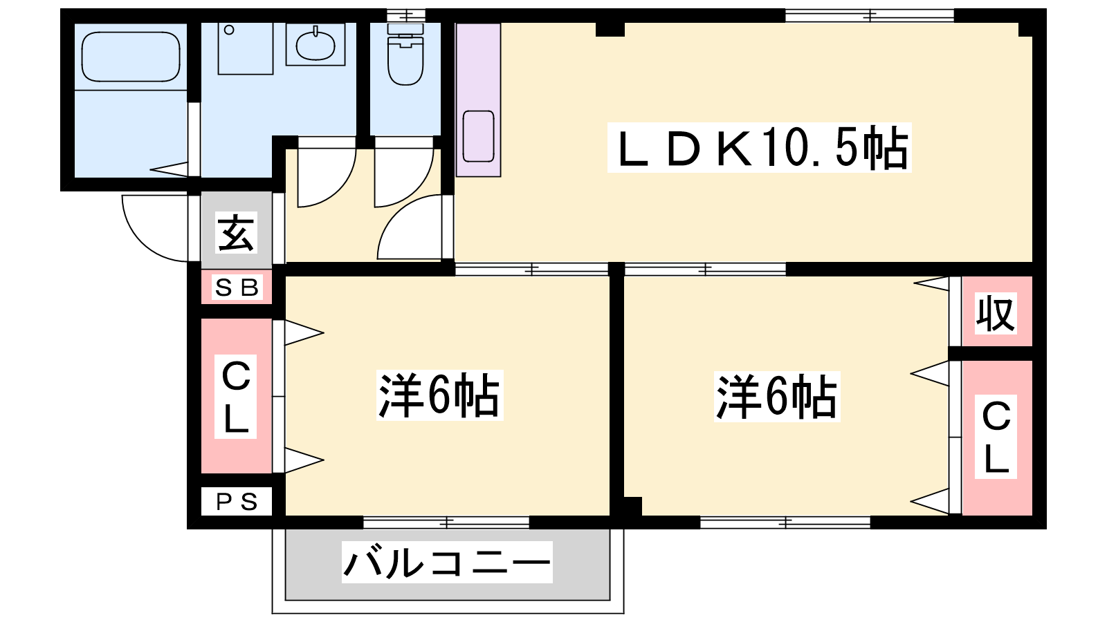 - LDK10.5帖、洋室6帖、和室6帖