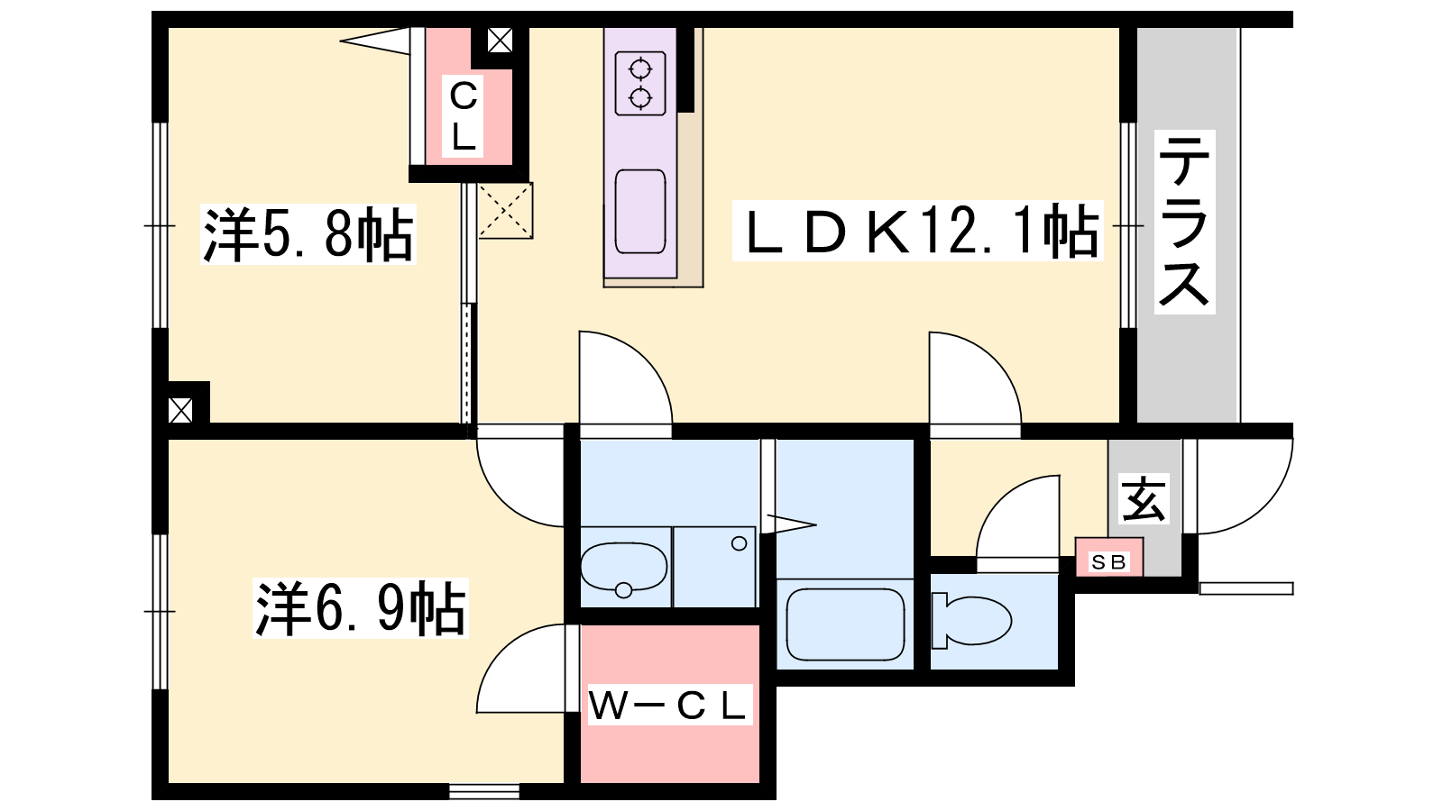 - LDK12.1帖、洋室6.9帖、洋室5.8帖
