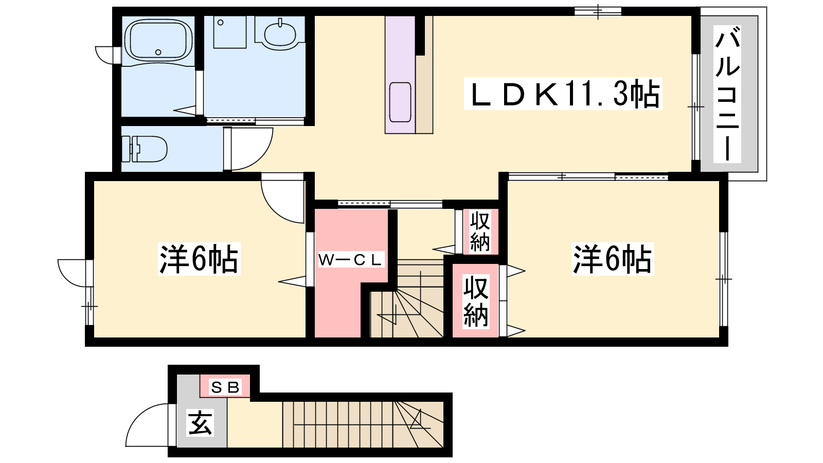 - LDK11.3帖、洋室6帖、洋室6帖