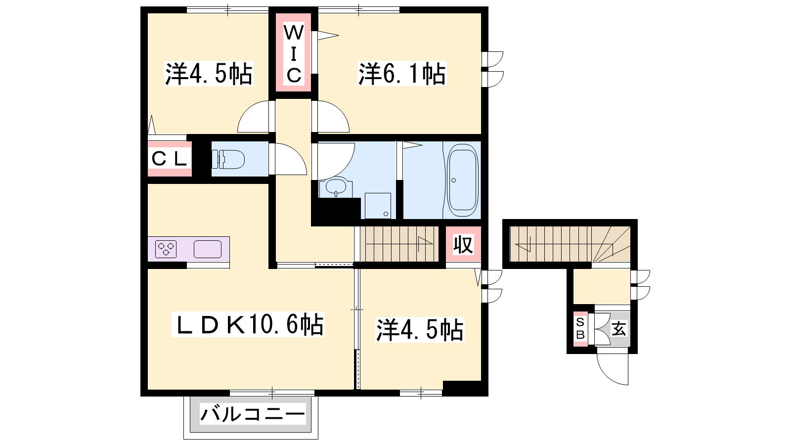 - LDK10.6帖、洋室6.1帖、洋室4.5帖、洋室4.5帖