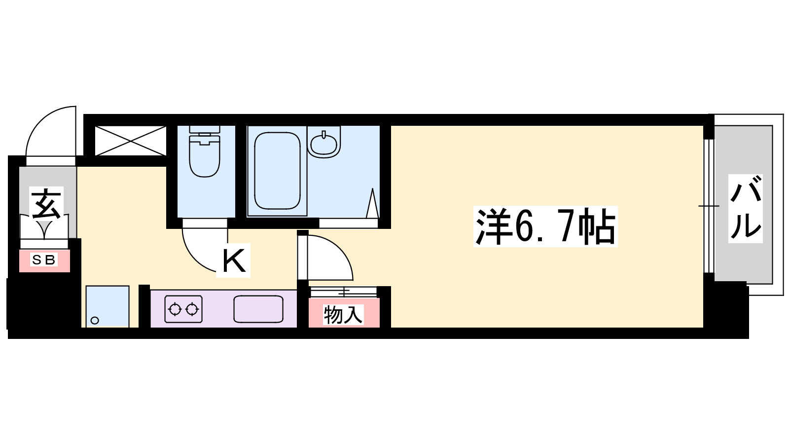 - K2帖、洋室6.7帖