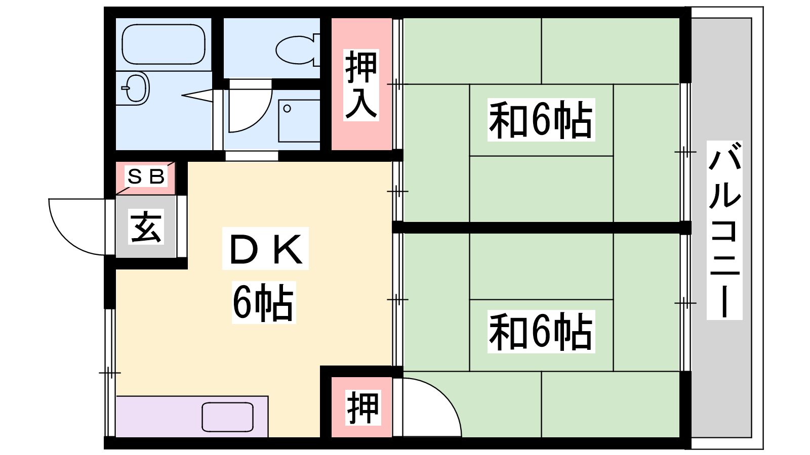 - DK6帖、和室6帖、和室6帖