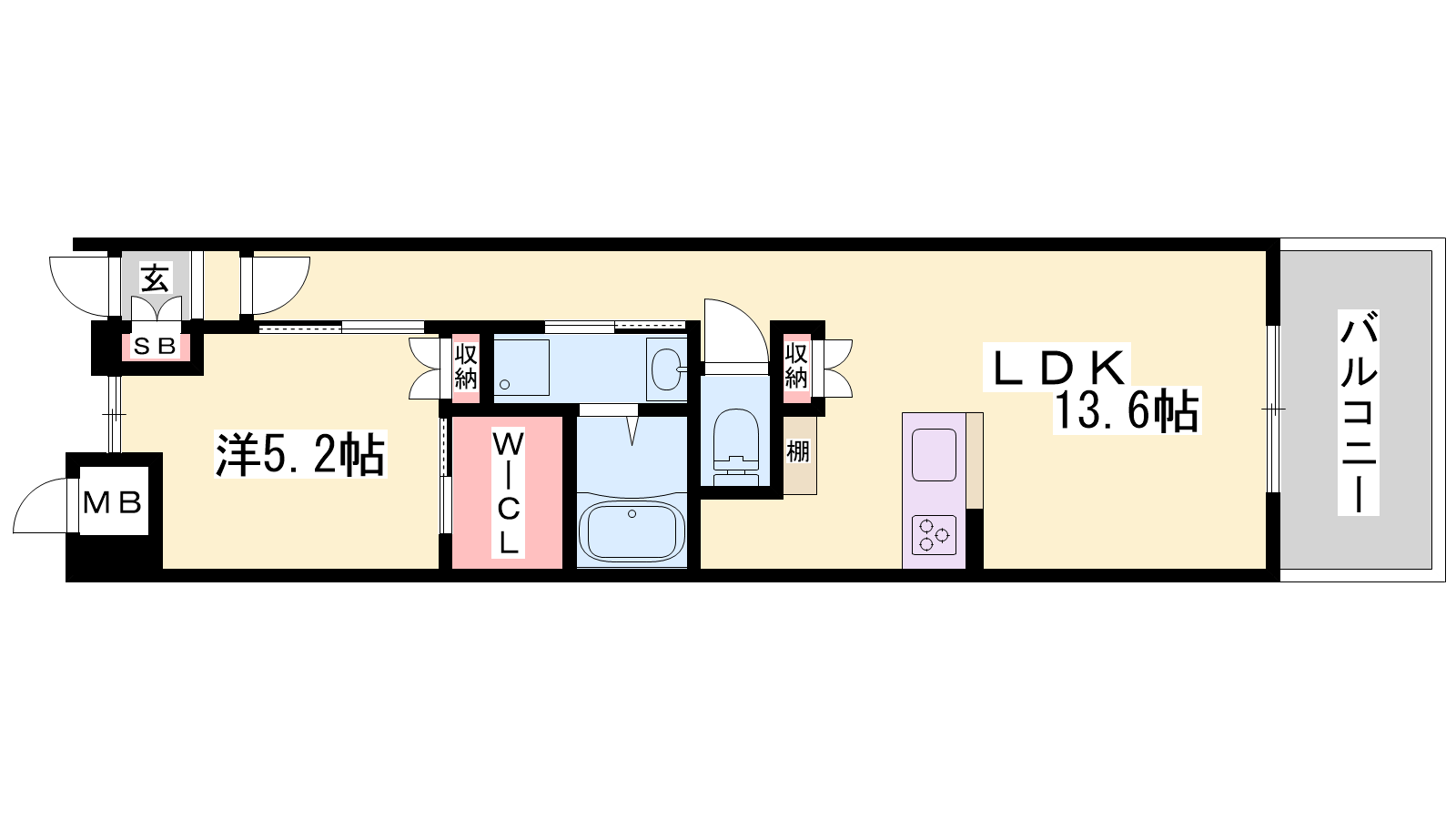 - LDK13.6帖、洋室5.2帖