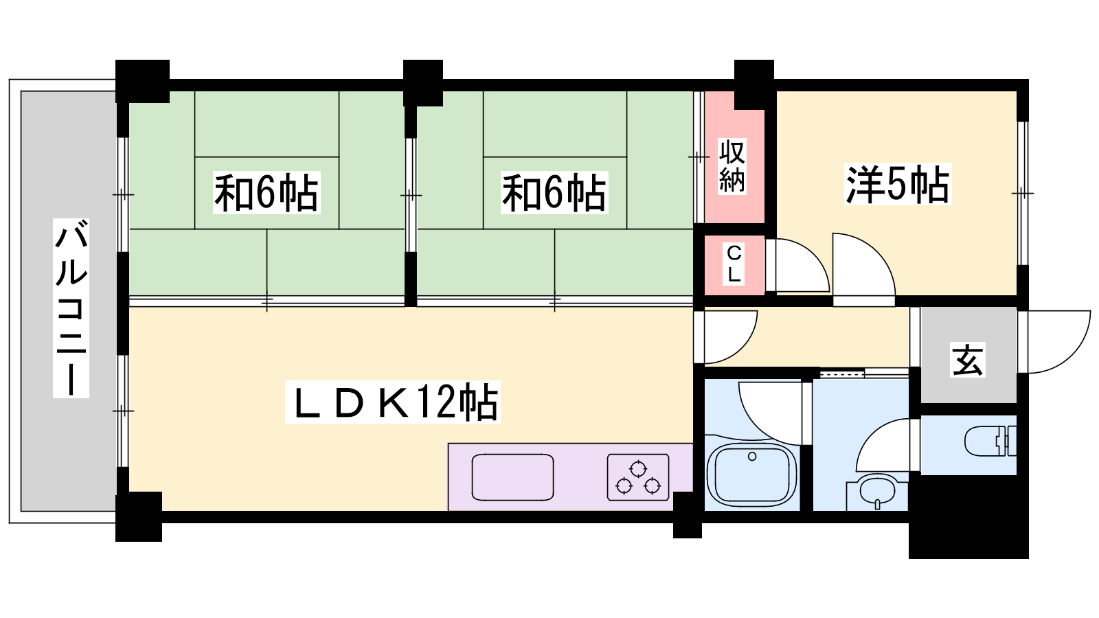 - LDK12帖、洋室5帖、和室6帖、和室6帖