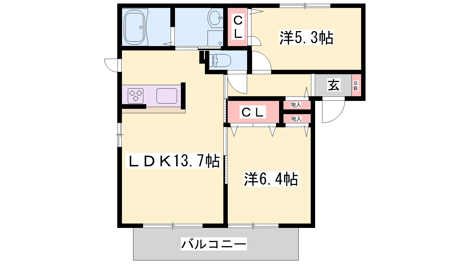 - LDK13.7帖、洋室6.4帖、洋室5.3帖