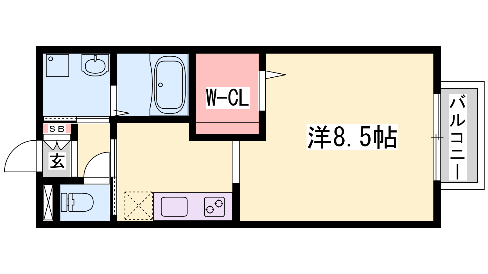 - K3帖、洋室8.5帖